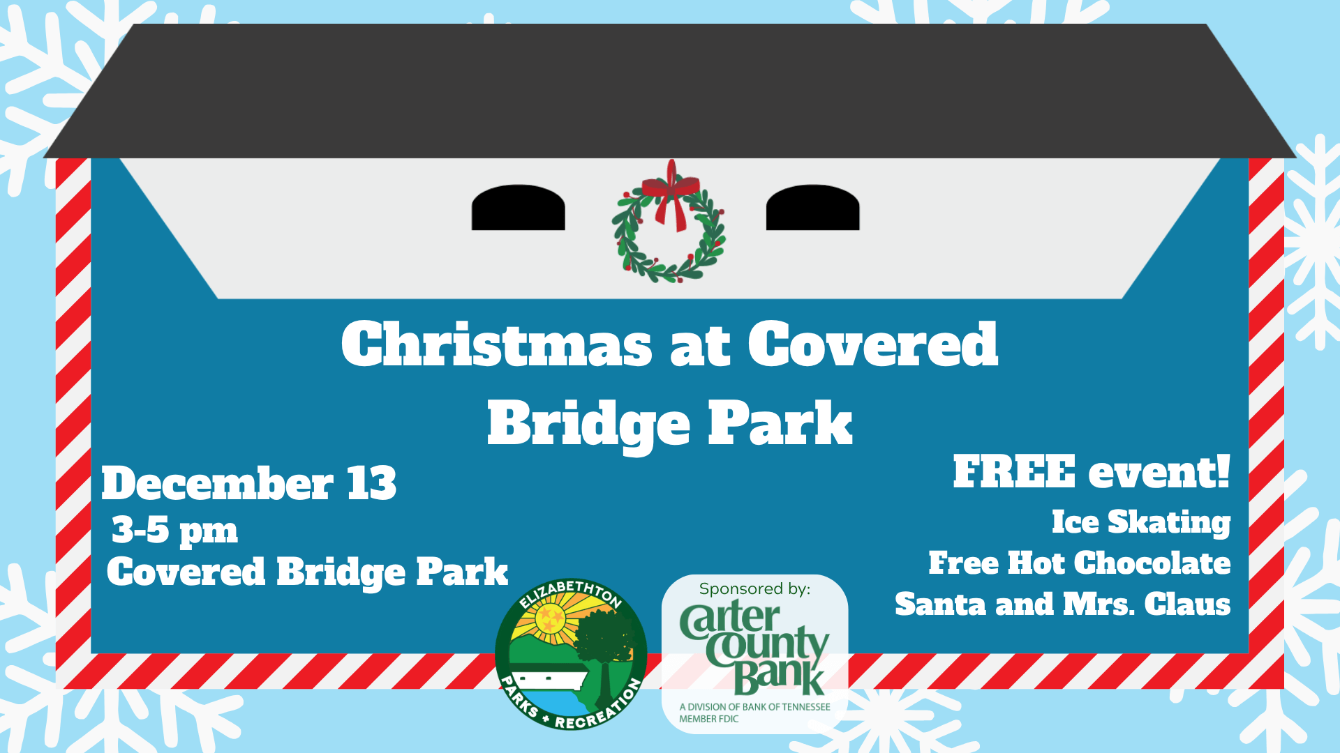 Elizabethton Parks and Recreation is excited to bring Christmas at Covered Bridge Park back for 2025! This much loved Christmas celebration, sponsored by Carter County Bank, will take place at Covered Bridge Park from 3-5 pm on December 13th before the Elizabethton Christmas Parade.
