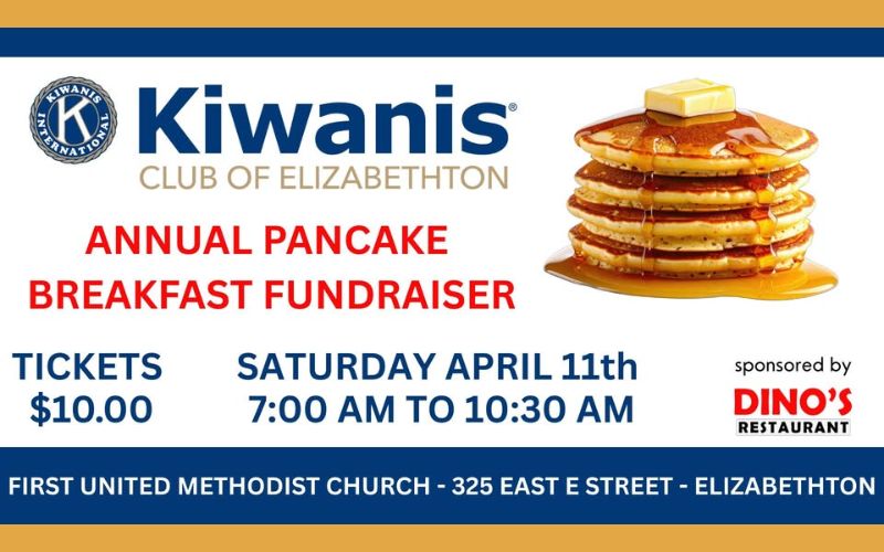 HomeEventsKiwanis Club of Elizabethton Annual Pancake Breakfast Fundraiser Kiwanis Club of Elizabethton Annual Pancake Breakfast Fundraiser SHARE NOW Sat, Apr 11 from 7:00am to 10:30am First United Methodist Church325 East E Street, Elizabethton, TN Map Add to My Calendar