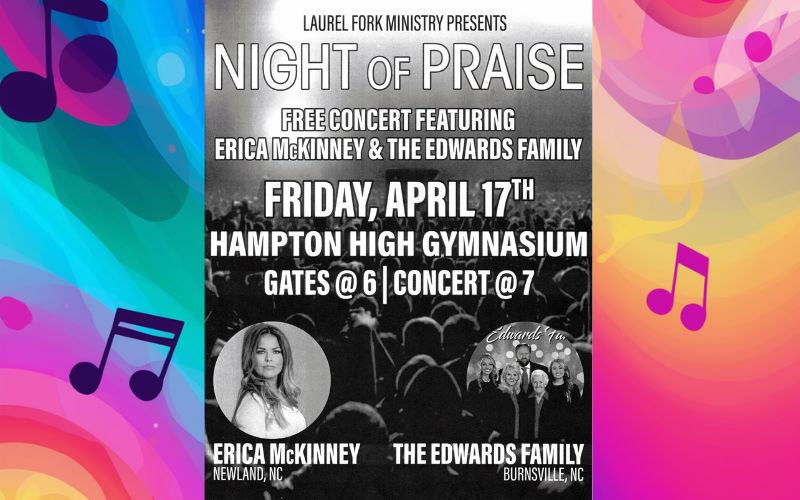HomeEventsNight of Praise – Free event! Night of Praise – Free event! SHARE NOW Fri, Apr 17 from 6:00pm to 9:00pm Hampton High School Gymnasium766 1st Ave, Hampton, TN Map Add to My Calendar