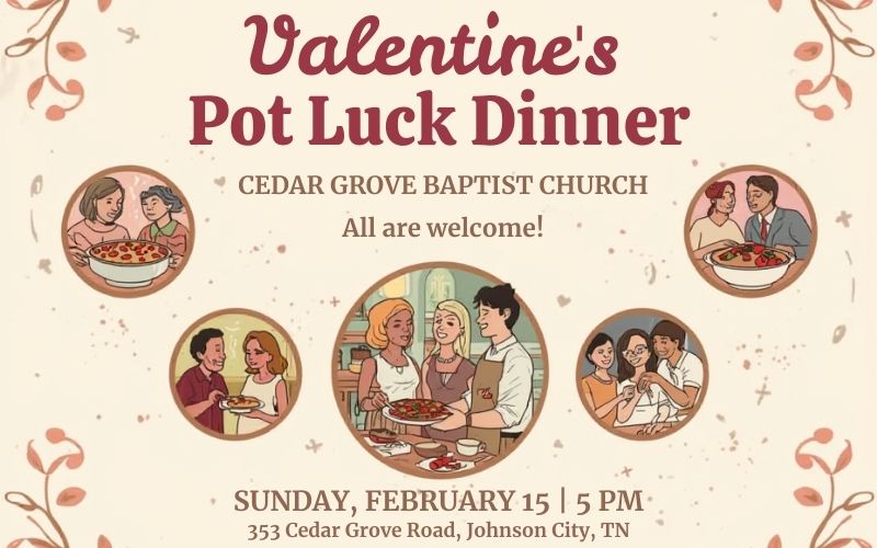 Bring a dish to share for a wonderful Valentine’s Pot Luck Dinner!